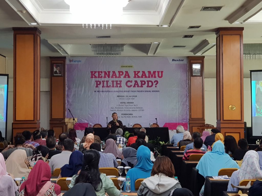 Pernyataan dokter Kepresidenanan RSPAD (Rumah Sakit Pusat Angkatan Darat) itu disampaikan dalam seminar awam mengambil tema “Kenapa Kamu Pilih CAPD?”. Acara tersebut digelar oleh Komunitas Pasien Cuci Darah Indonesia yang bekerjasama dengan Baxter Healthcare Asia, Minggu (21/7/2019). Seminar tersebut dihadiri oleh 170 orang lebih, yang sebagian besar pasien gagal ginjal kronik.