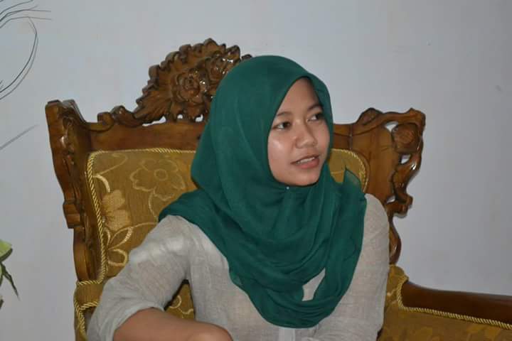 Paras wajahnya imut, berkacamata. Kalau sedang diajak ngobrol, senyum manisnya lebih mendominasi, dan terlihat jelas gigi putihnya nan rapi. Kerundung…